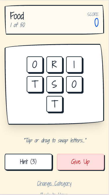 Dive into a charming, hand-drawn word puzzle experience! Letter Swaps challenges your brain to unscramble hidden words in a unique "notebook" aesthetic. Whether you're a fruit fanatic, a foodie, or an animal lover, there's a category for everyone to solve.